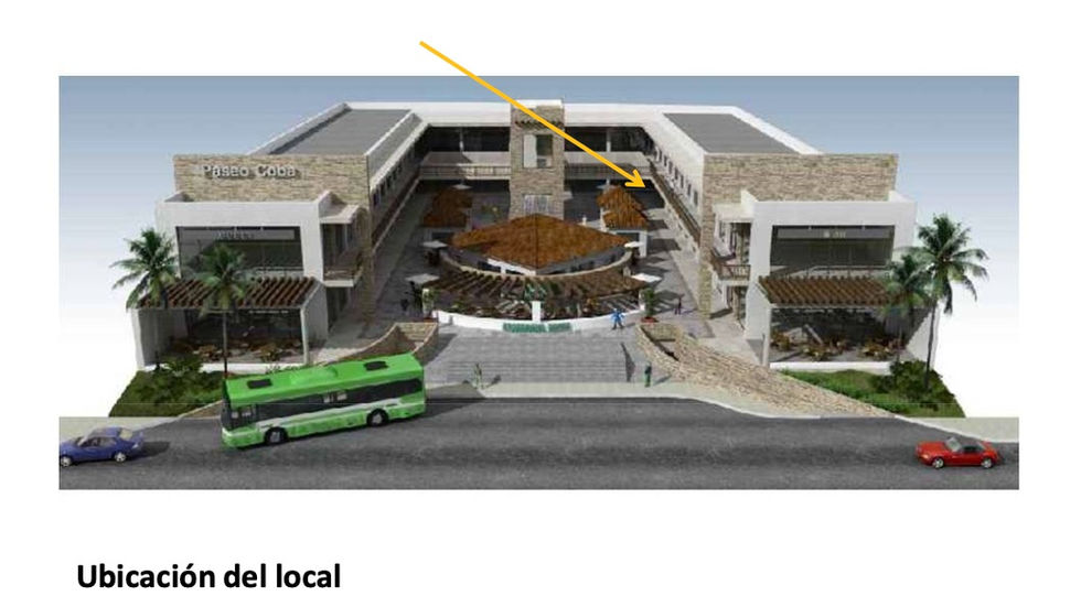 Commercial space for sale, located in the Paseo Coba plaza which, due to its location, is aimed at tourists, and at market segments A, B and C+